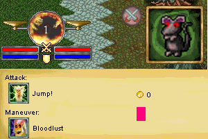 At this point, if you have gained around 30-40 initiative you should walk towards the enemy and use "opportunity knocks" until the enemy's defence bar is depleted completely. Now, use the attack listed above that corresponds with the weapon you are carrying. If you didn't kill the enemy with a single blow it is useful to use the special move "sting like a bee" which, if the combat intensity is at 10, will fill your attack gauge completely allowing you to attack again. If the enemy is still not dead after your second attack, run back to the water and begin the process again.